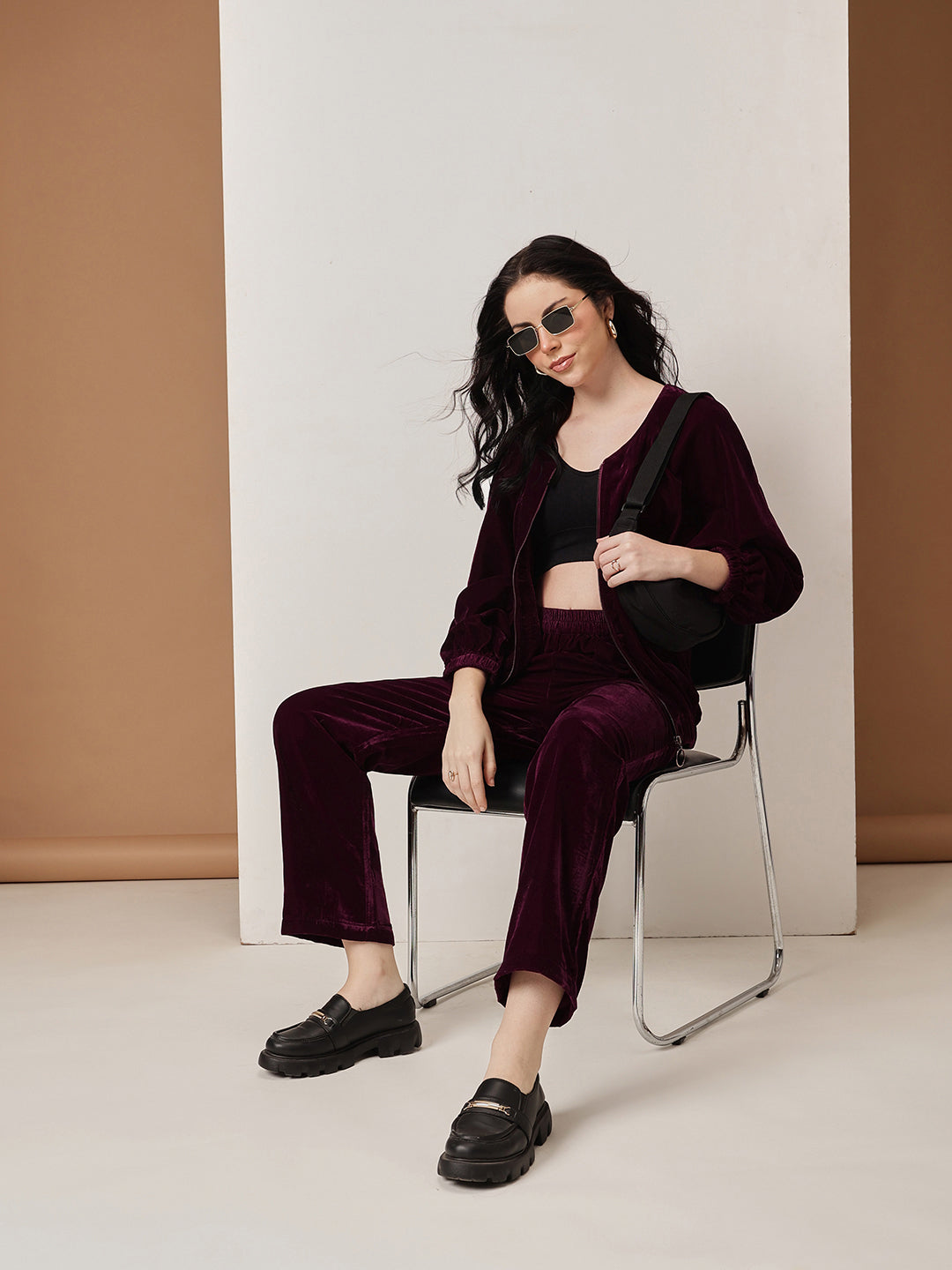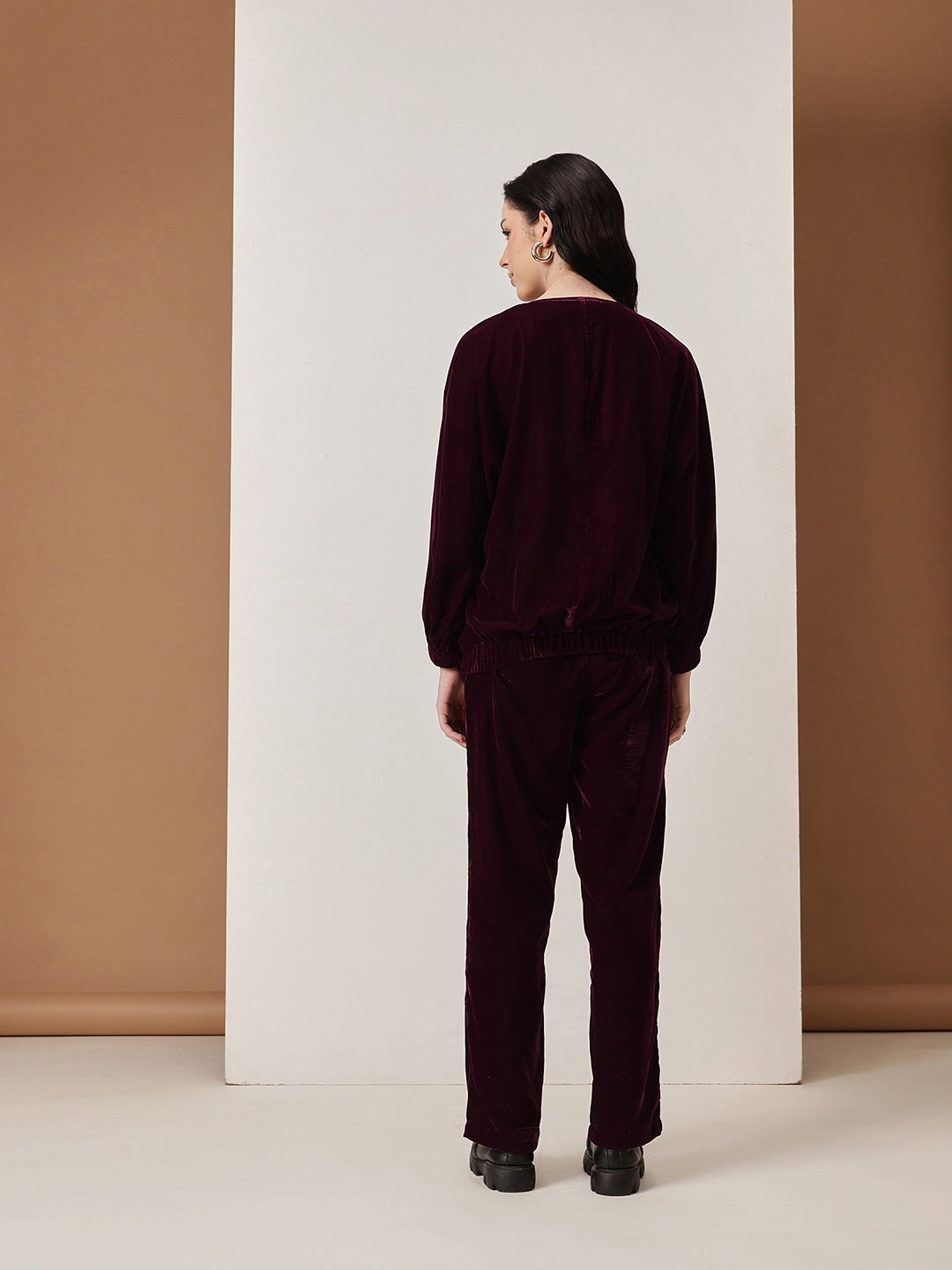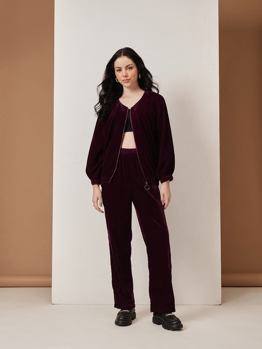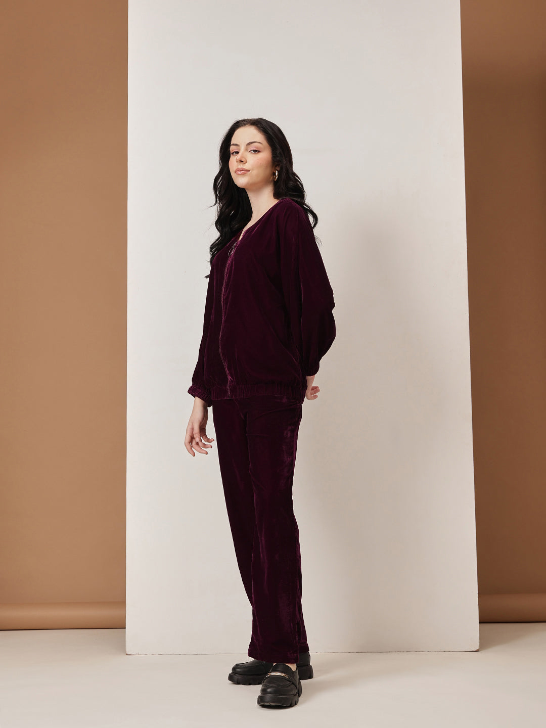 HOUSE OF S WOMEN PURPLE VELVET CO-ORD SET