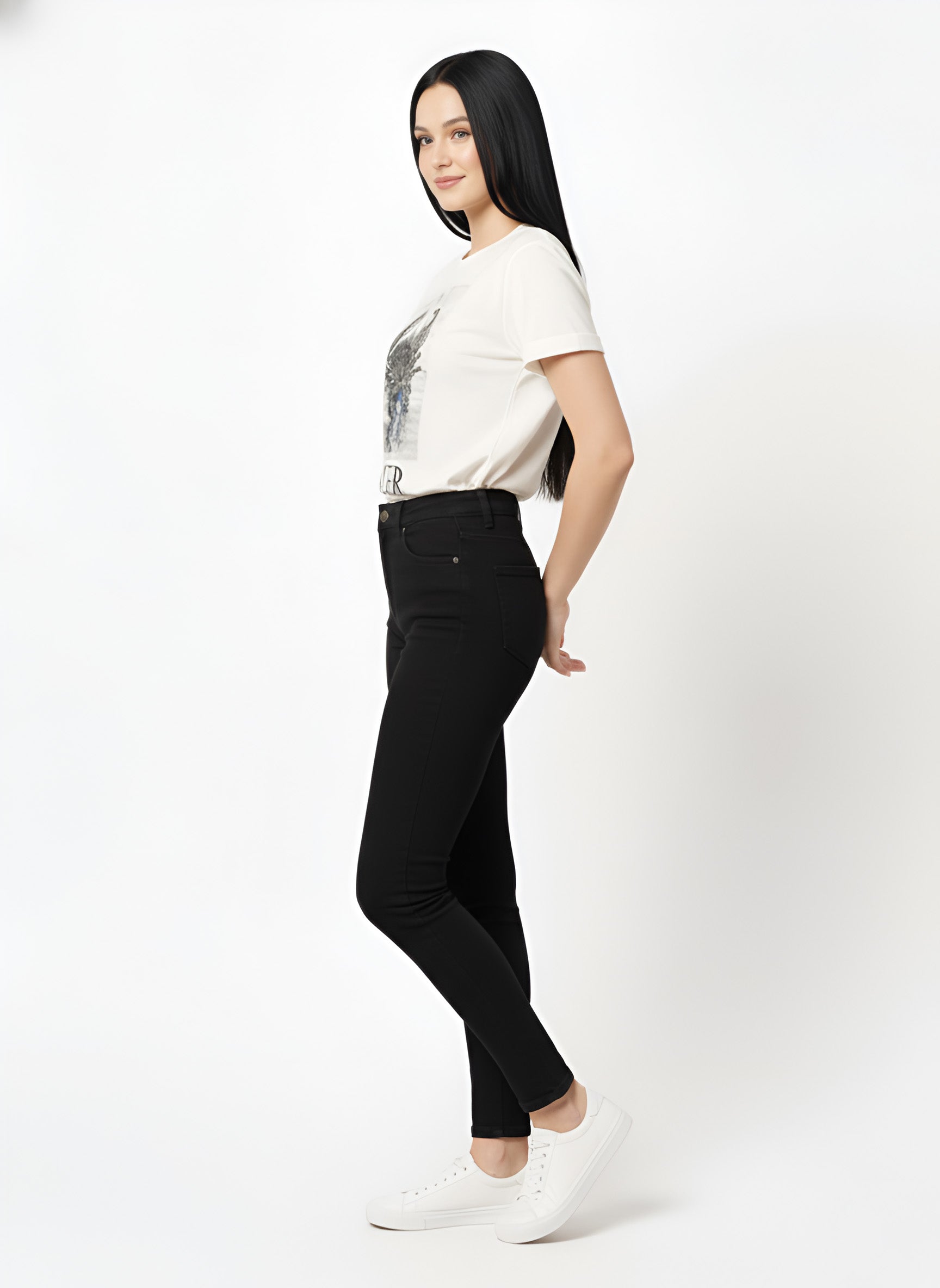 Pair this t-shirt from Cover Looks with black denim and white shoes.