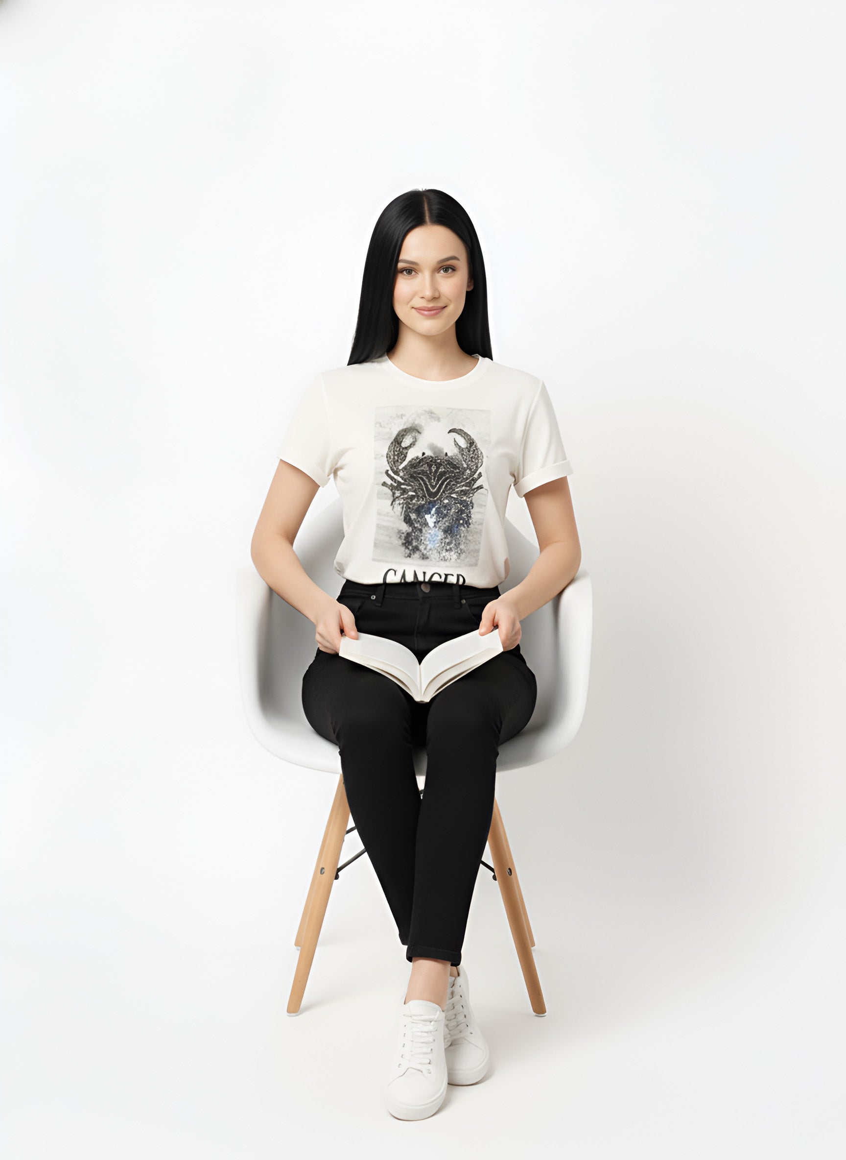 Keep things casual with this loose fit white cancer zodiac sign printed t-shirt. versatile and comfortable, this t-shirt is a great pick for casual wear. it is cut into comfortable fit, round neck and half sleeves. quirky print makes it look more attractive.