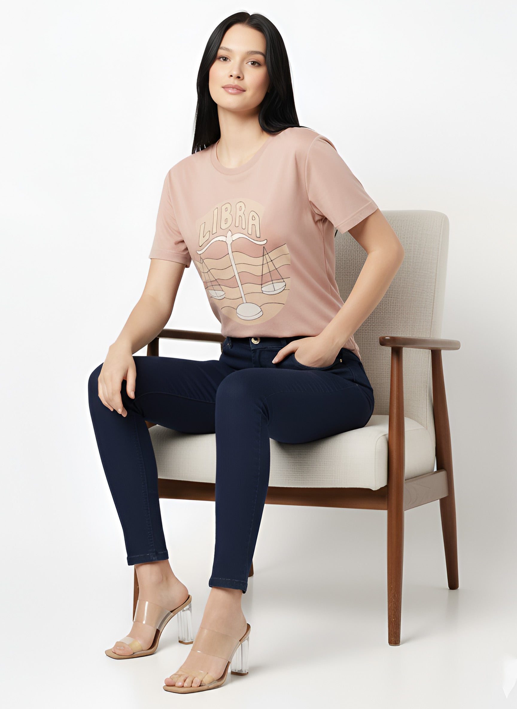 Keep things casual with this loose fit pink libra zodiac sign printed t-shirt. versatile and comfortable, this t-shirt is a great pick for casual wear. it is cut into comfortable fit, round neck and half sleeves. quirky print makes it look more attractive.