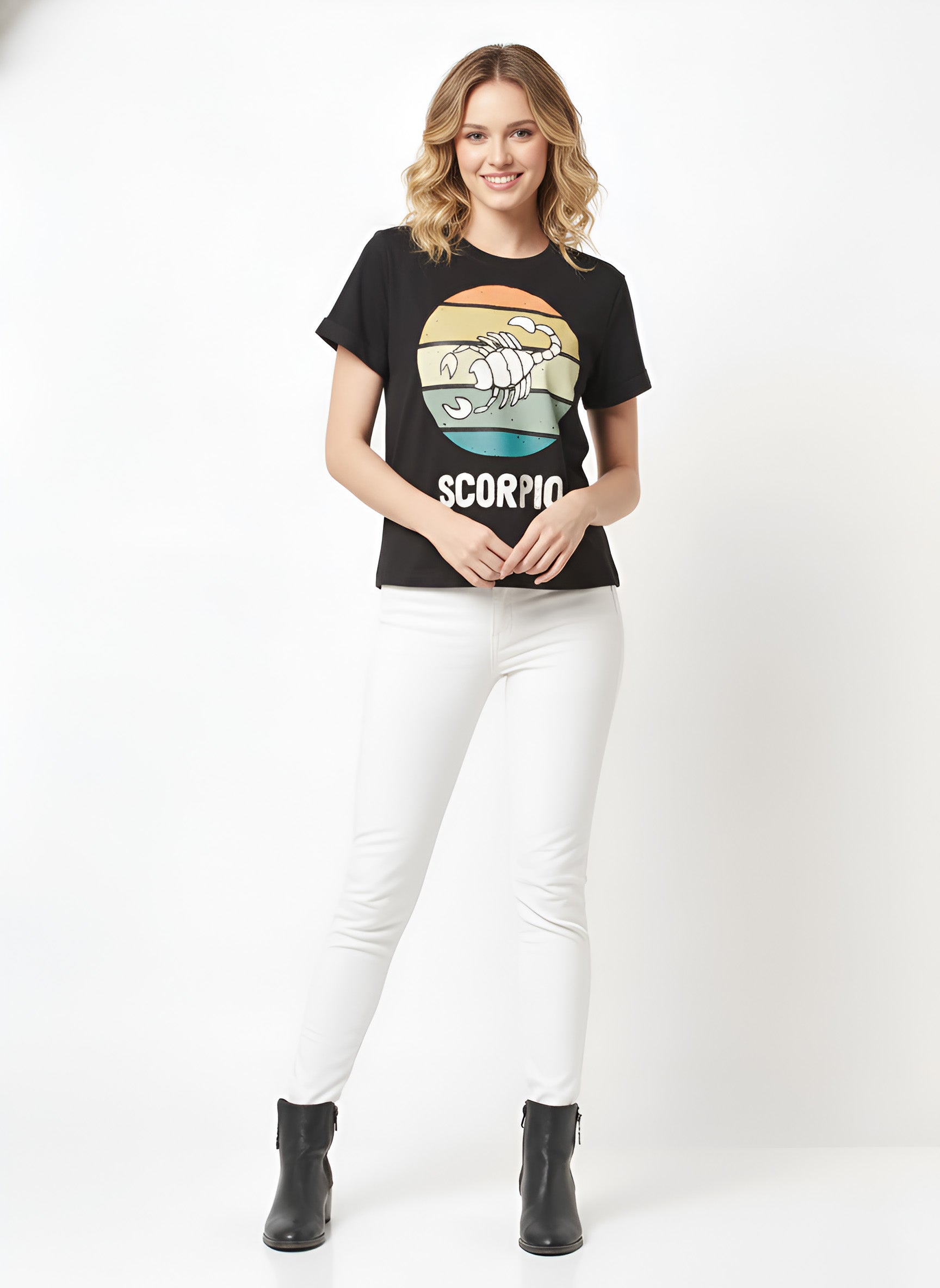 Keep things casual with this loose fit grey Capricorn zodiac sign printed t-shirt. versatile and comfortable, this t-shirt is a great pick for casual wear. it is cut into comfortable fit, round neck and half sleeves. quirky print makes it look more attractive..